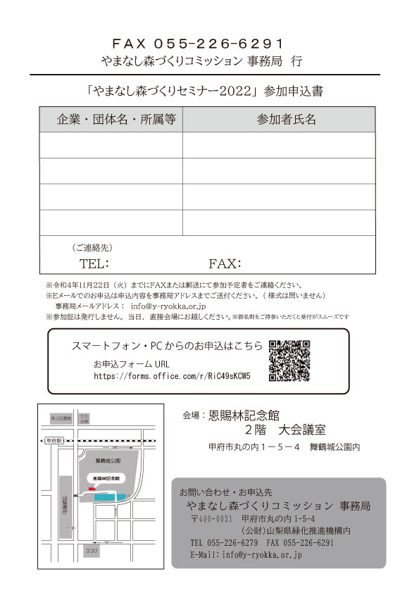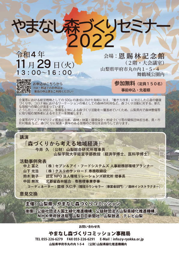 「やまなし森づくりセミナー2022」をご案内いたします。