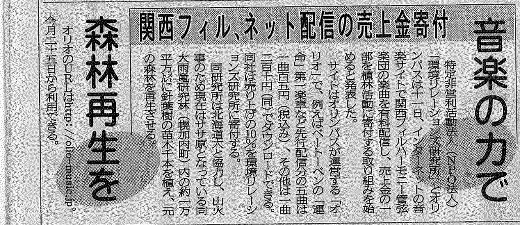 【地方紙】神戸新聞 音楽の力で森林再生を 関西フィル、ネット配信の売上金寄付