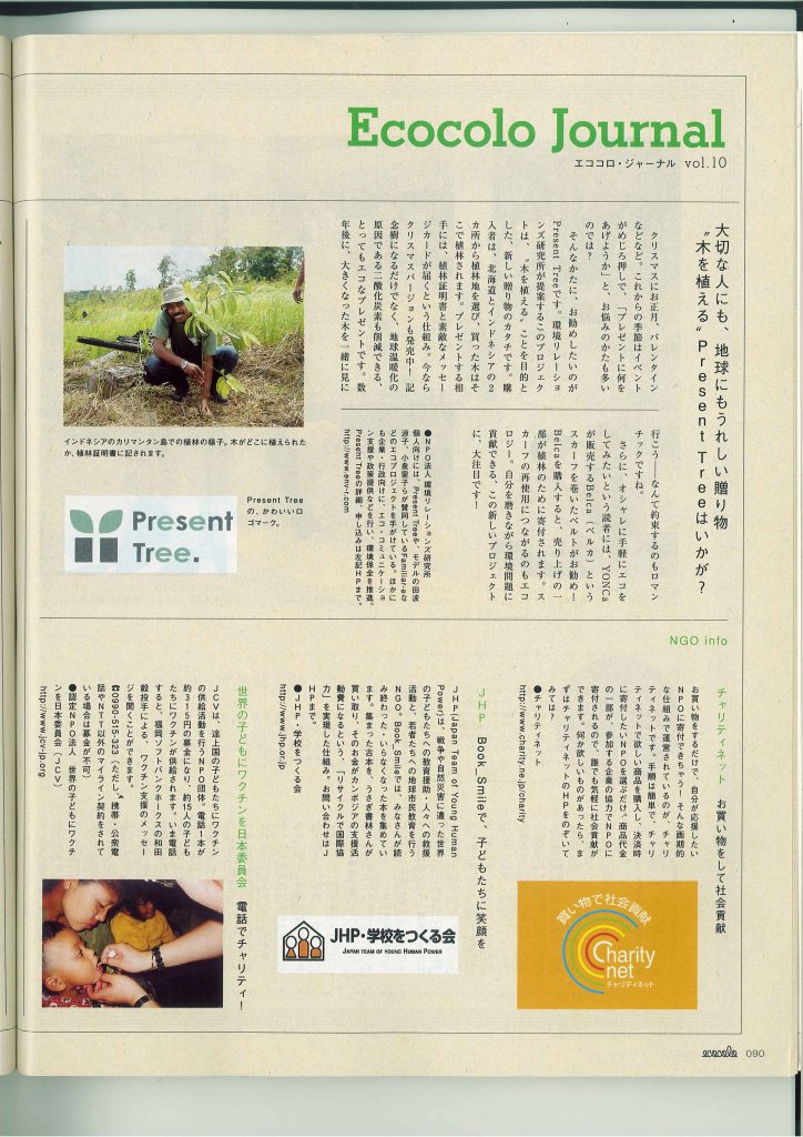 【雑誌】ecocolo 大切な人にも、地球にもうれしい贈り物”木を植える”PresentTreeはいかが?