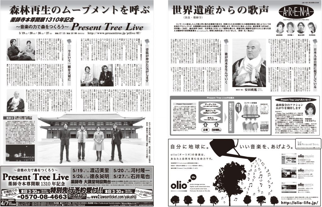 【全国紙】朝日新聞 森林再生のムーブメントを呼ぶ世界遺産からの歌声