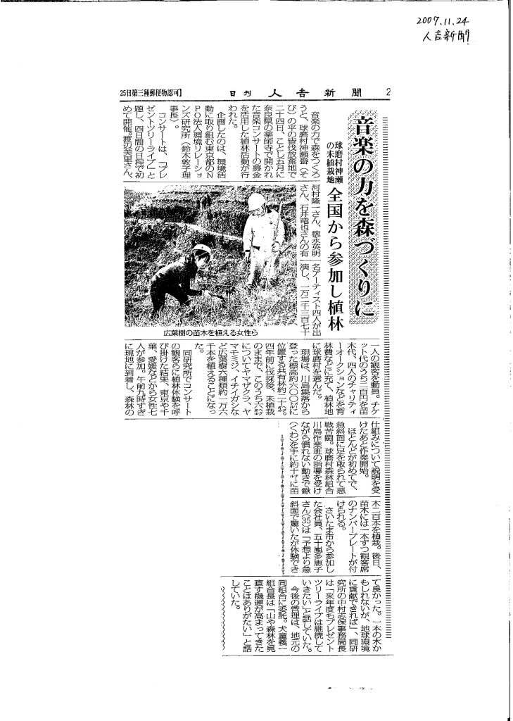 【地方紙】人吉新聞 音楽の力を森づくりに 全国から参加し植林