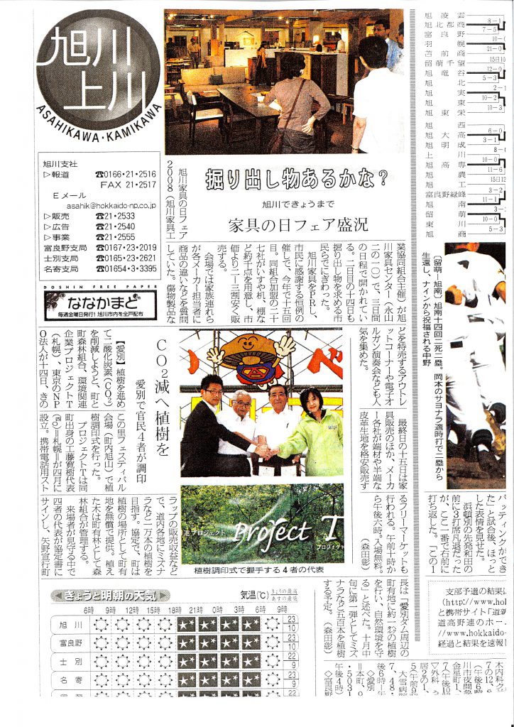 【地方紙】北海道新聞 CO2減へ植樹を