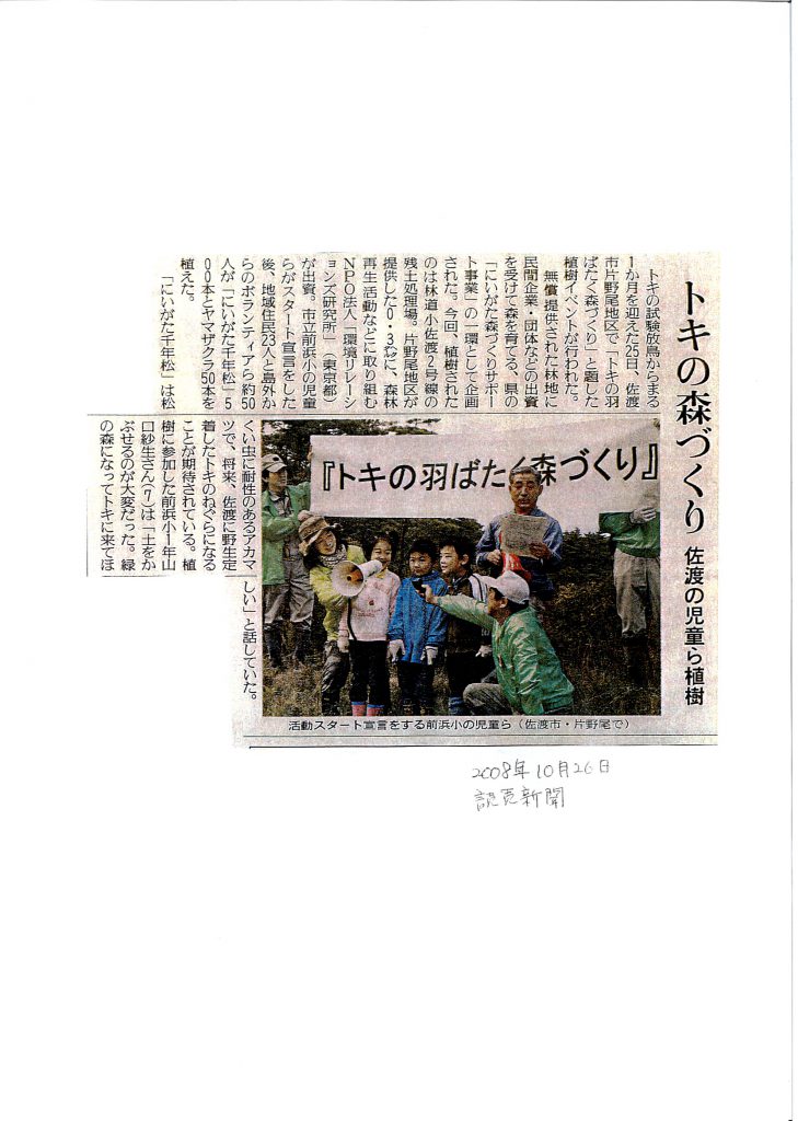 【全国紙】読売新聞 トキの森づくり 佐渡の児童ら植樹