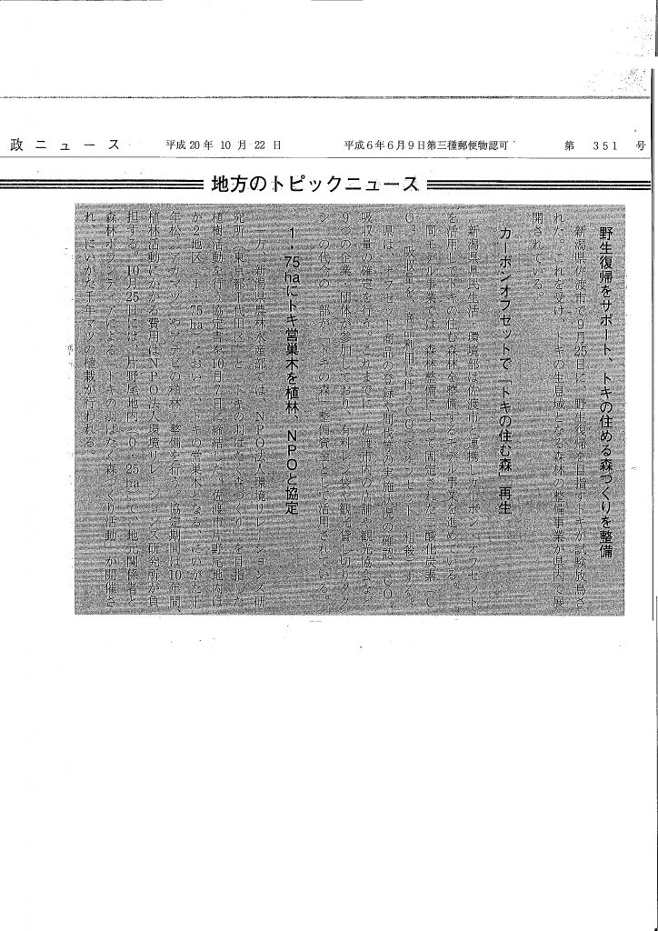 【業界紙】林政ニュース 1.75haにトキ営巣僕を植林、NPOと協定
