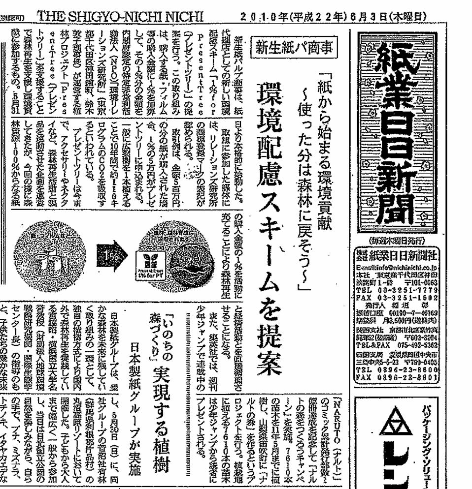 【業界紙】紙業日日新聞 新生紙パルプ商事 環境配慮スキームを提案
