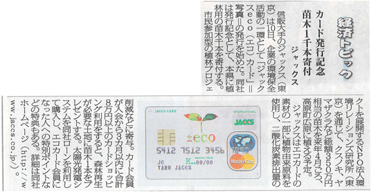 【地方紙】宮崎日日新聞 カード発行記念 苗木1千本寄附 ジャックス