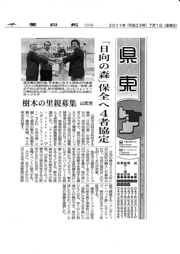 【地方紙】千葉日報 日向の森4者協定へ 樹木の里親募集