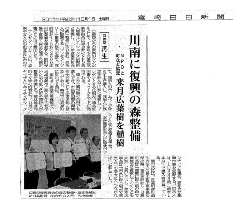 【地方紙】宮崎日日新聞 川南に復興の森整備