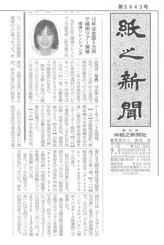 【業界紙】紙之新聞 12年は全国5カ所で植樹ツアー開催 環境リレーションズ