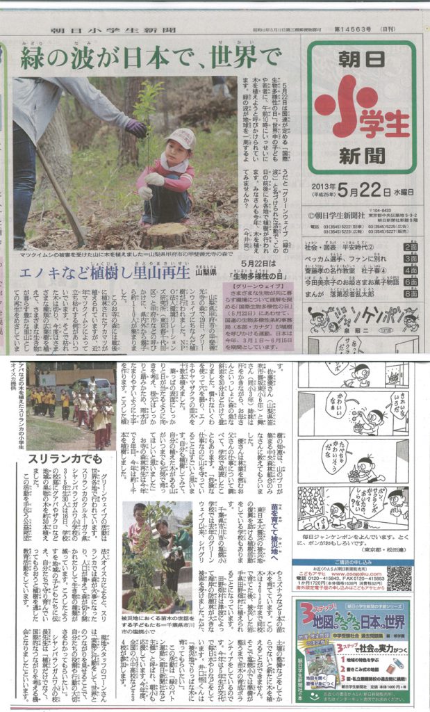 【一般紙】朝日小学生新聞 緑の波が日本で、世界で
