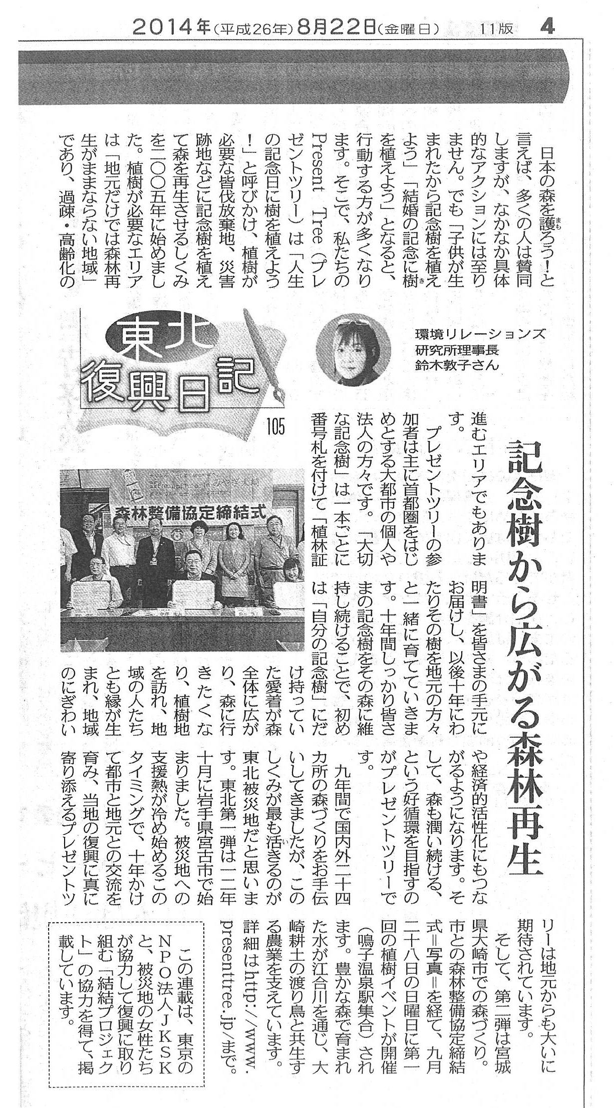 【地方紙】東京新聞 東北復興日記105 記念樹から広がる森林再生