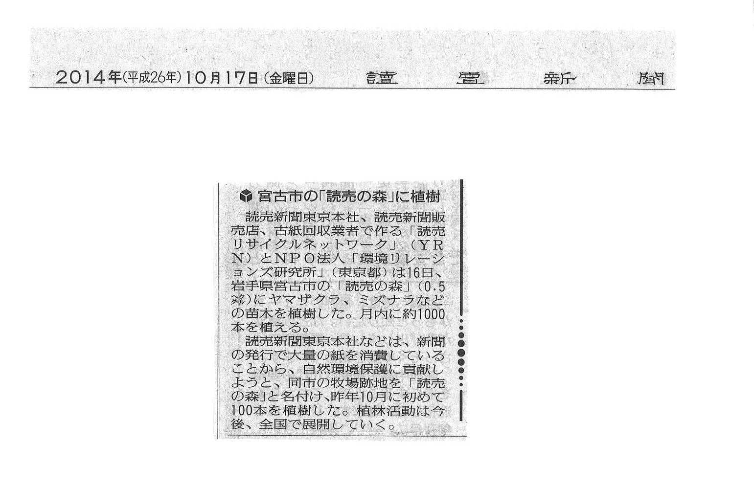 【全国紙】読売新聞 宮古市の「読売の森」に植樹