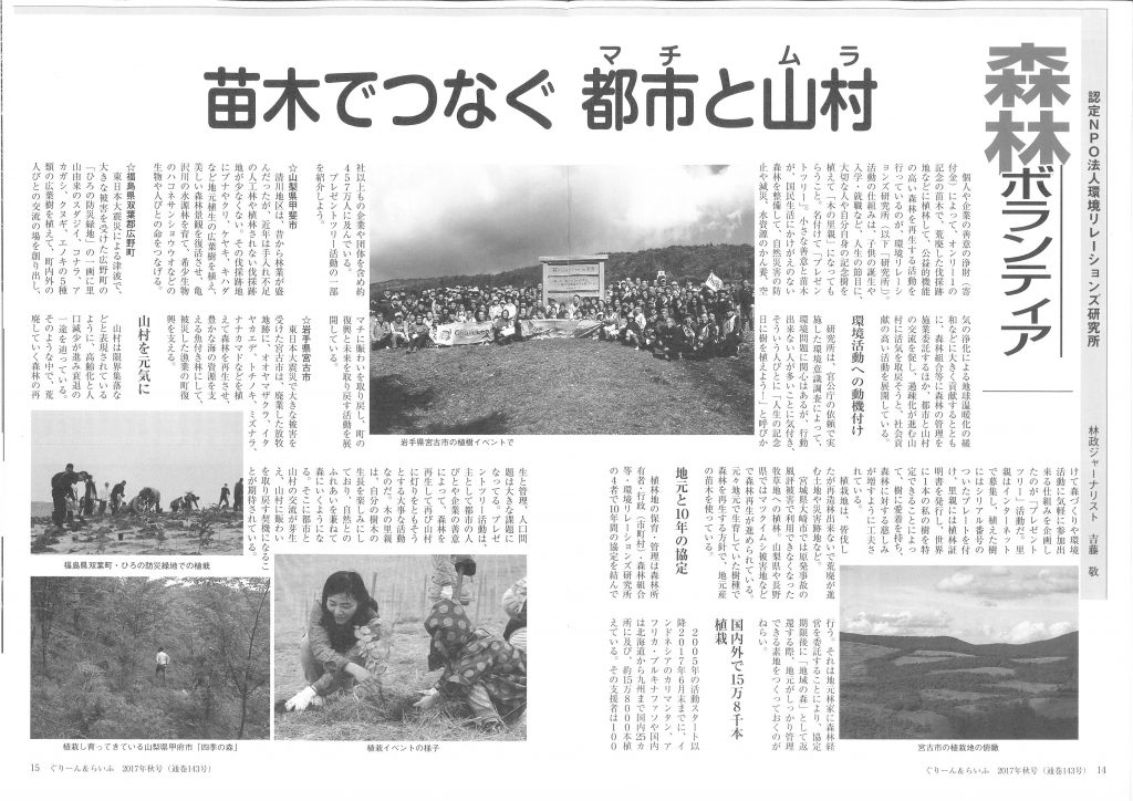 【雑誌】ぐりーん&らいふ 2017年秋号 苗木でつなぐ都市と山村