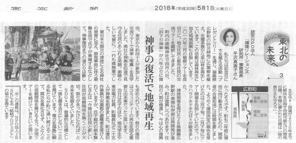 【地方紙】 東京新聞 「SDGs東北の未来へ 3」神事の復活で地域再生