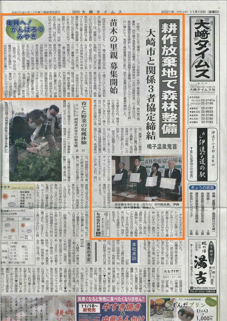 【地方紙】 【PT inみやぎ大崎】協定式が『大崎タイムス』に掲載されました