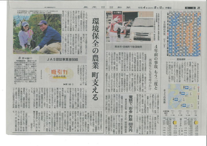 【地方紙】熊本日日新聞に「PT inくまもと山都町」の植樹ツアーの記事が掲載されました