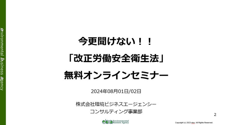 「改正労働安全衛生法」 無料オンラインセミナーを開催いたしました
